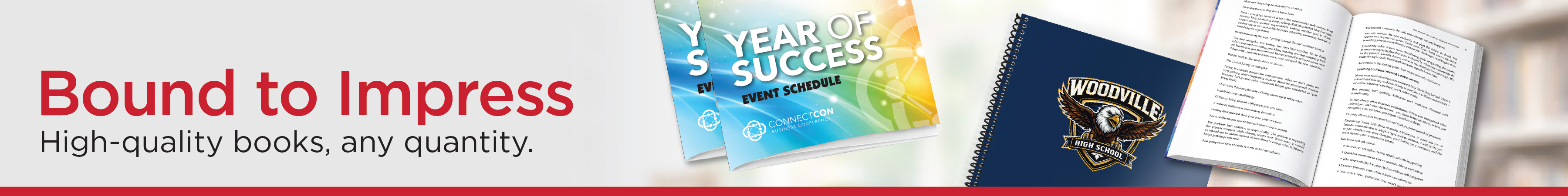 There are no minimums or maximums on book orders; order exactly as you need, right when you need it. We also offer a variety of binding options, sizes, and paper sticks to match your vision.